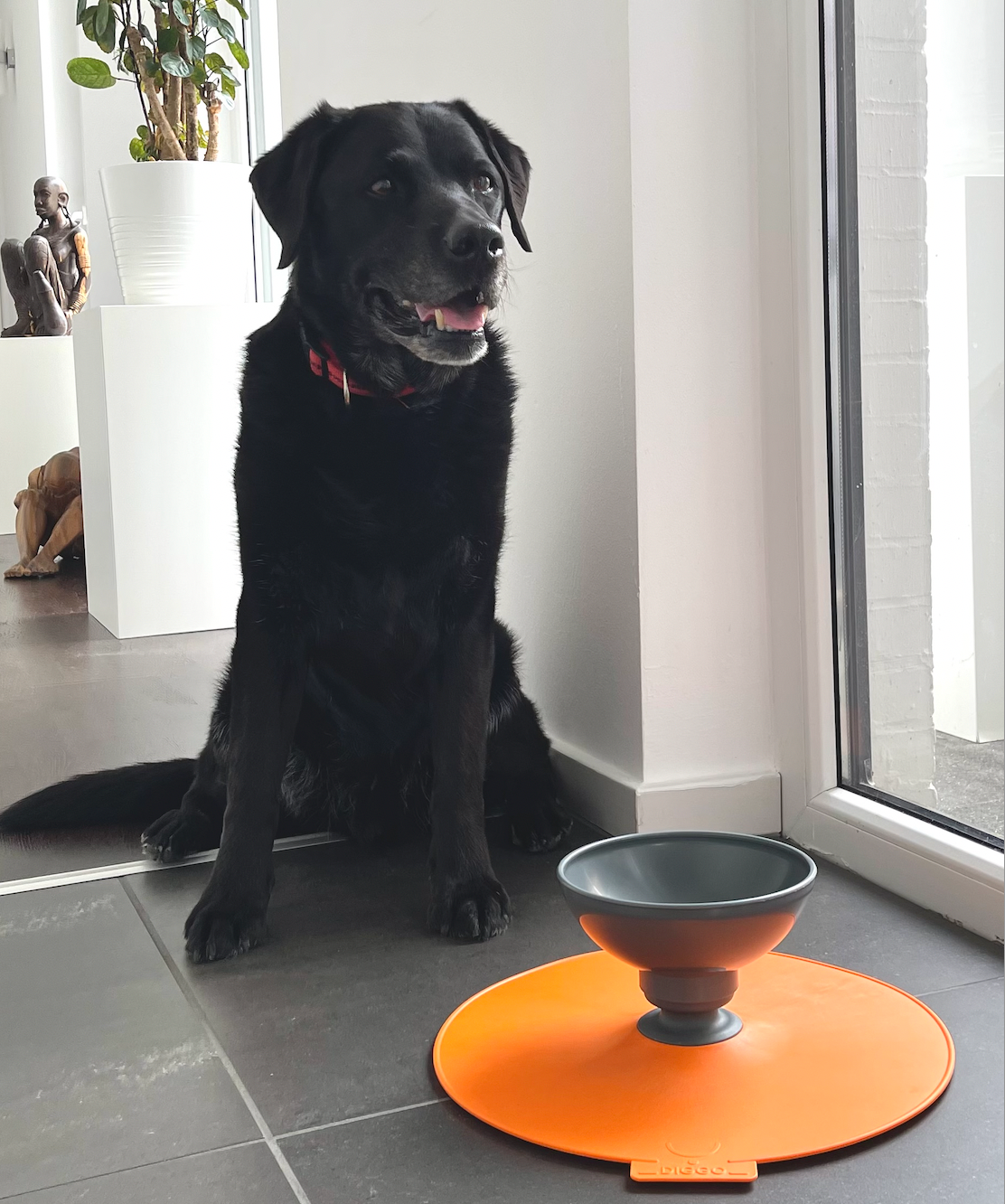 Das DIGGO Futterset hält den Napf sicher am Platz und nimmt evtl. doch herunterfallende Futterreste auf.